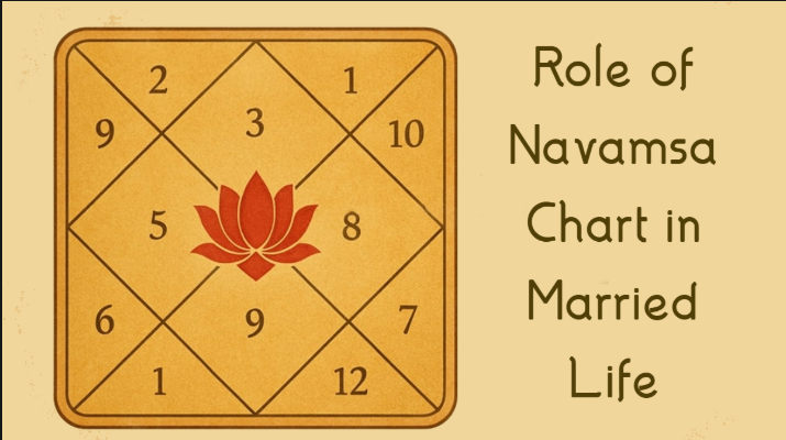 The Navamsa chart, also known as the D9 chart in Vedic astrology, plays a crucial role in understanding the deeper aspects of married life. While the birth chart (D1) provides an overview of an individual’s life, personality, and major life events, the Navamsa chart reveals the inner strength of planets and the true potential of relationships, especially marriage. It is often considered the chart of destiny in relationships, highlighting how a person evolves emotionally and spiritually within a marriage.One of the most important aspects of the Navamsa chart is its connection to the seventh house, which governs marriage and partnerships. In the D9 chart, the condition of the seventh house, its lord, and the planets placed within it offer valuable insights into the quality of married life. A strong and well-placed seventh lord in the Navamsa chart generally indicates harmony, mutual respect, and emotional bonding between partners. On the other hand, afflictions or weak placements can suggest misunderstandings, delays, or challenges in sustaining a relationship.